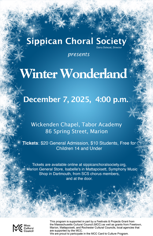 Sippican Choral Society is a non-audition community chorus that welcomes singers of all ages and abilities. See our Membership page for details.